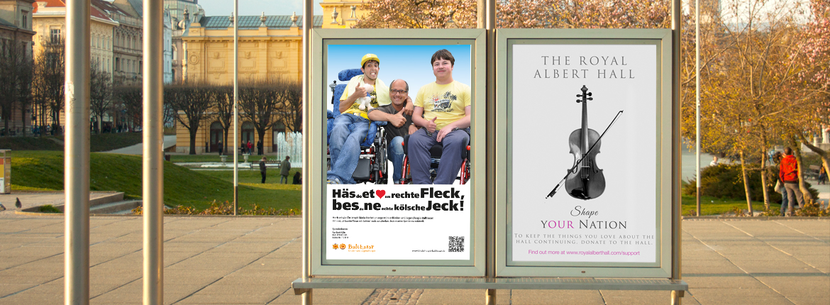In my portfolio, I am proud to showcase a city light poster that I designed as a fundraiser for handicapped children. This impactful project involved the collaboration of a renowned German actor, Christoph Maria Herbst, who graciously served as the event's sponsor.